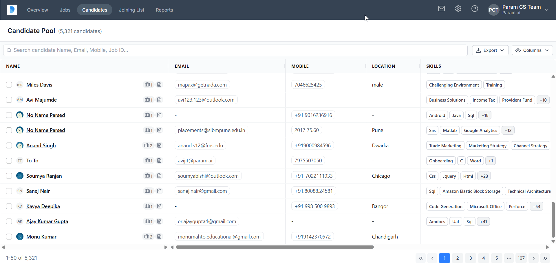 Submissions from listed staffing agencies were added to the Param platform.